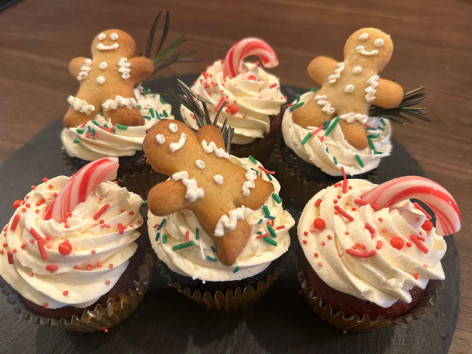 Mix of Christmas decorated Red Velvet and Double Chocolate cupcakes
