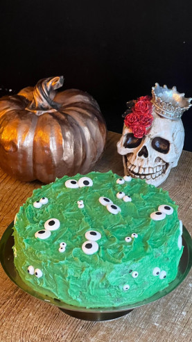 Fun Halloween themed chocolate cake with monster eyes. 20cms.