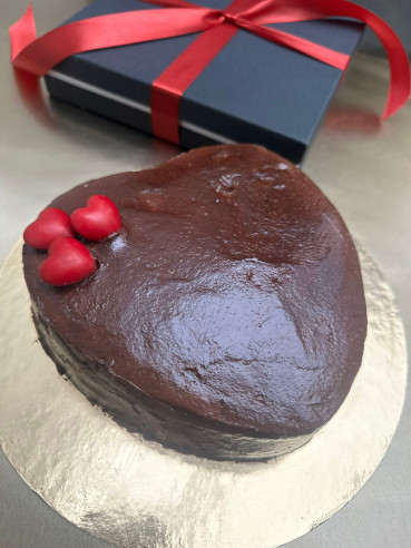 Special Valentine edition of our Double Chocolate cake. Heart shaped and with special Valentine decorations. 12cms in size!