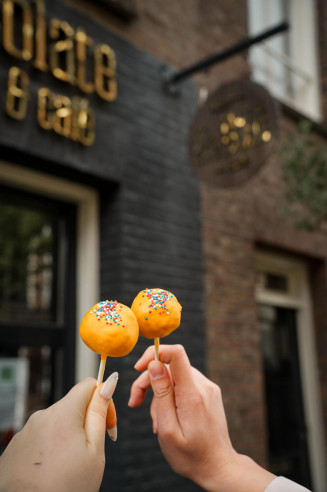 Sinaasappel-vanille cake pops, gedoopt in sinaasappelchocolade en verpakt als een speciale traktatie! De verpakking bevat 6 cake pops.